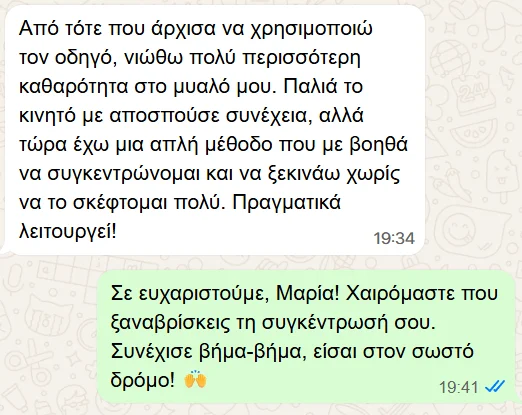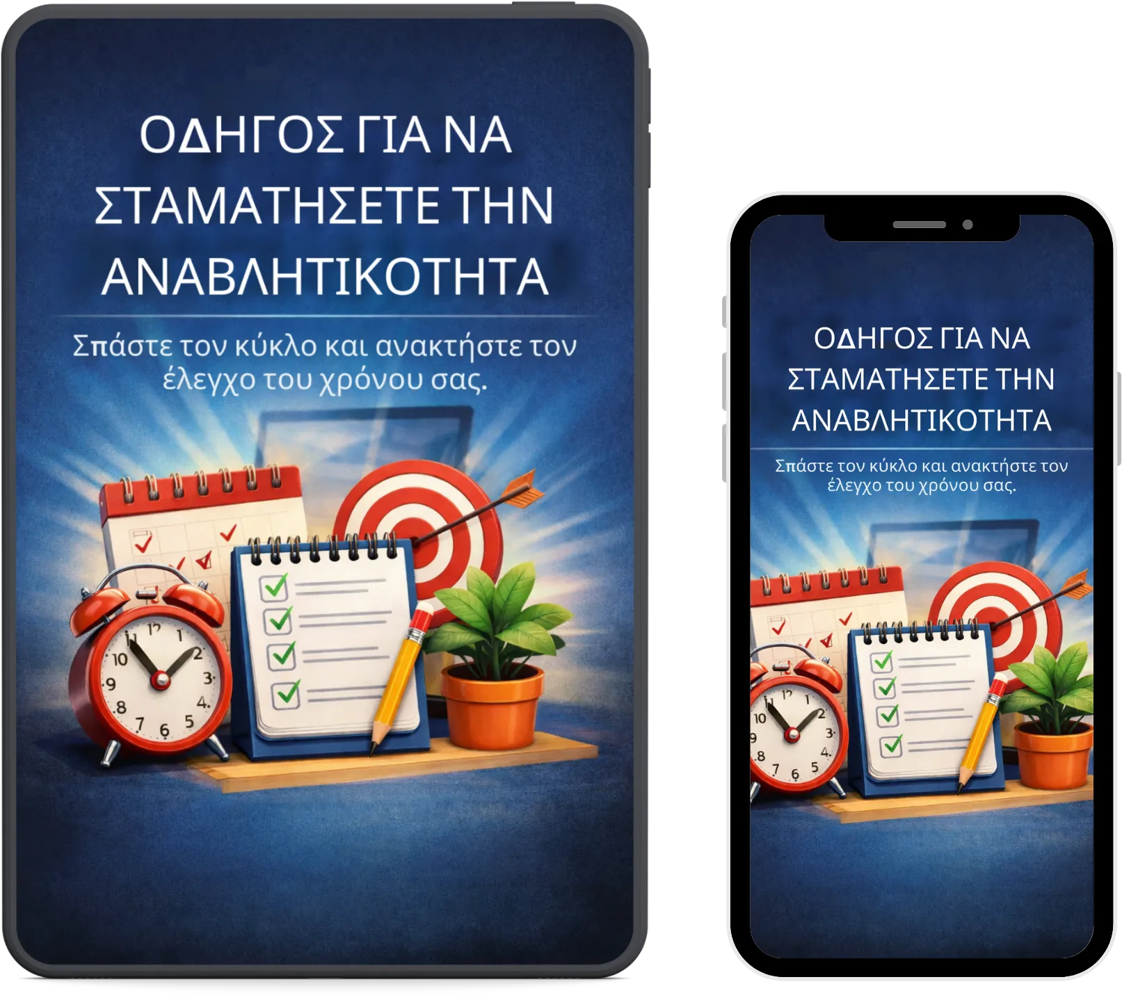 Παίρνεις άμεση πρόσβαση σε έναν οδηγό βήμα-βήμα που σου δείχνει ακριβώς πώς να αντιδράς όταν πας να αναβάλεις — χωρίς περιττές θεωρίες.