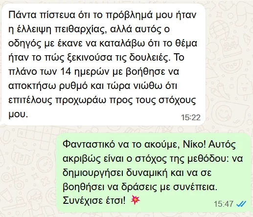 Δεν χρειάζεται να νιώθεις «εμπνευσμένος» για να δουλέψεις. Ακολουθείς ένα σύστημα που λειτουργεί ακόμα και στις δύσκολες μέρες.
